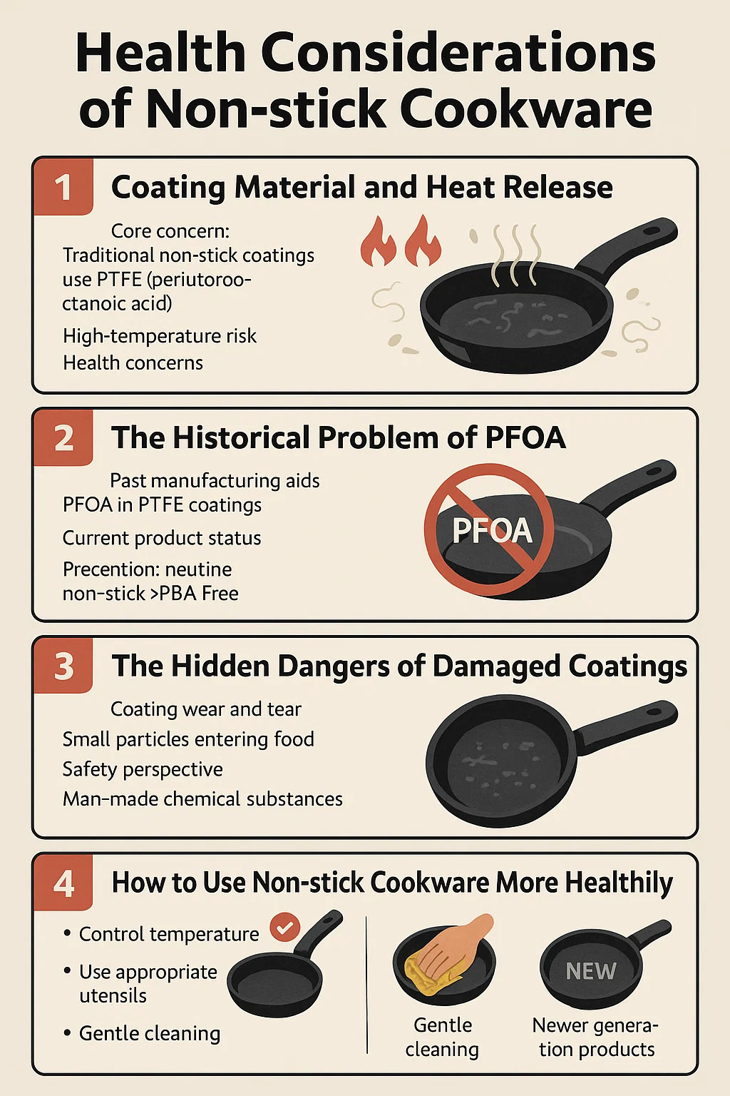 Non-stick cookware is very popular in kitchens because it makes cooking and cleaning easier. However, concerns about their health implications have always existed. This article will provide a detailed, point-by-point explanation of the health factors of non-stick cookware in simple language.