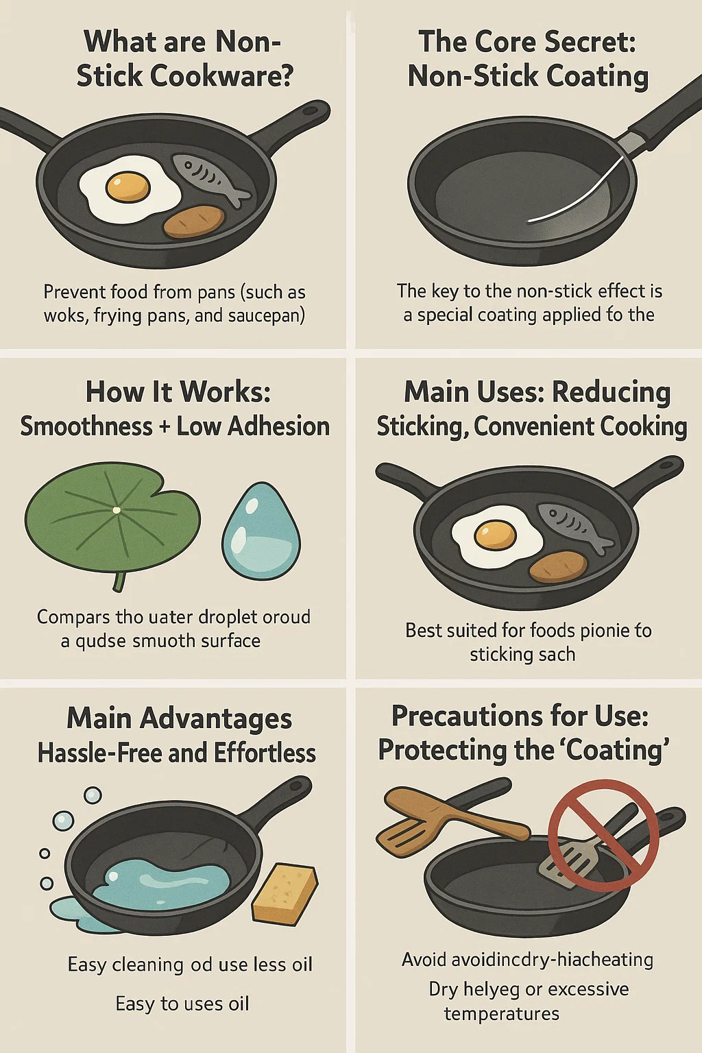Simply put, they are pots and pans (such as woks, frying pans, and saucepans) whose inner surface has been specially treated to prevent food from sticking to the bottom during cooking. When you stir-fry, fry eggs, or fry fish, the food won't easily stick to the bottom of the pan.